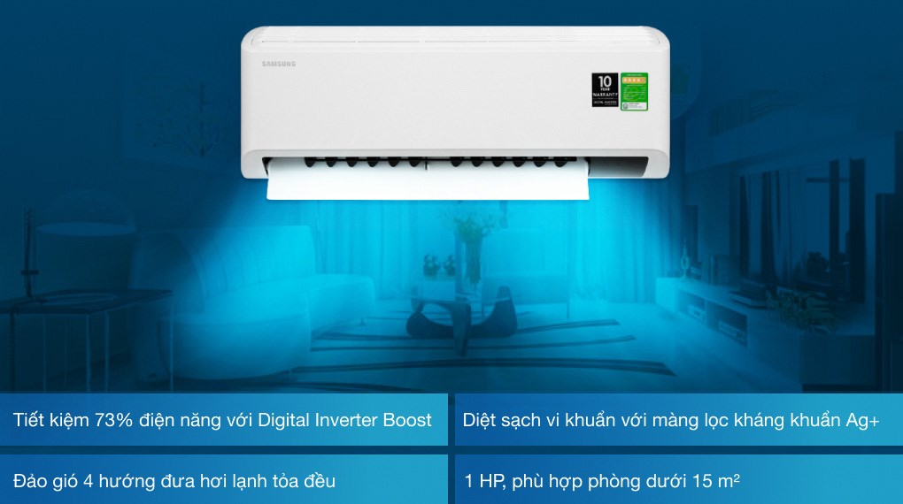 Máy lạnh thương hiệu Samsung 1HP phù hợp không gian phòng có diện tích từ 10 đến 15 m2
